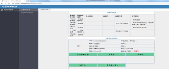 (5)毕业生以上四个环节均通过后,经管理员审核后可以领取毕业证及其他毕业材料离校,领取后该环节为通过状态。