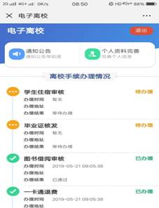 (4)毕业生完成退宿及物品清点等并经管理员审批后,该环节为通过状态。